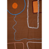 Handwoven wool blanket with applied cotton and wool hand embroidery, in a deep caramel tone with an abstract design in mixed colours, designed and made in Morocco by LRNCE.