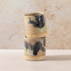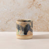 Mugs from part of the Kana London 'Emotional Landscapes' collection - A collection of pieces which have been expressively hand-painted by Kana London's founder and artist Ana Kerin, making each piece one-of-a-kind. Made from a mid-golden sand toned softly textured clay with brush marks in pistachio and deep inky-blue, these pieces are tactile and inviting.