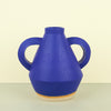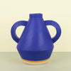 Diamond shaped vases with chunky angular handles in this striking blue colour.