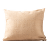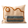 'LOOPA' handwoven cushion made in Marrakech by LRNCE, using traditional hand-embroidery techniques in wool and cotton, on a naturally dyed wool base. This cushion has an abstract design in cream, petrol and copper on a sandy ground colour.